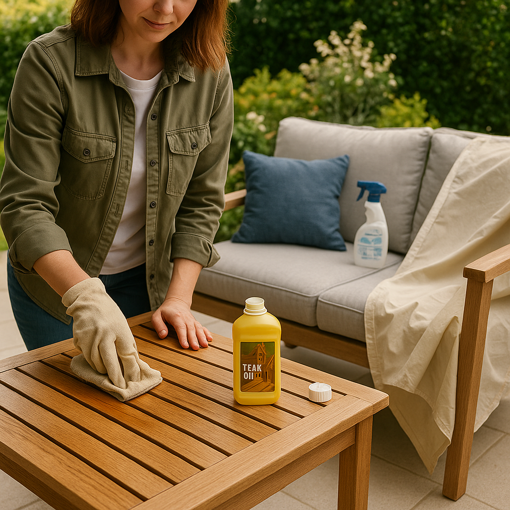 Il legno all’esterno necessita di una barriera contro sole e pioggia. Un ciclo annuale composto da pulizia, light sanding e olio/impregnante mantiene il colore e limita le crepe. Per arredi esposti a pieno sole, pianifica un richiamo di protezione UV per legno a metà estate.
